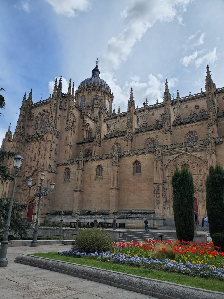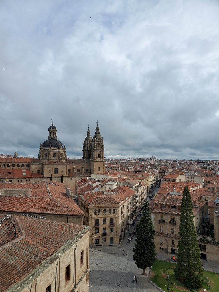 Salamanca is home to two major cathedrals, a university, monasteries and cloisters. The city still has much of the medieval walls intact and a bridge dating back to the days Spain was part of the Roman Empire. We enjoyed several days wandering around looking at the buildings and enjoying the end of term vibe given off by the students. One day as we finished our (too early by Spanish standards) lunch, we realized that all of the folks we’d seen walking around in various costumes were following some musicians down the street in an impromptu parade. Apparently it’s a thing, but we couldn’t find many details about it.