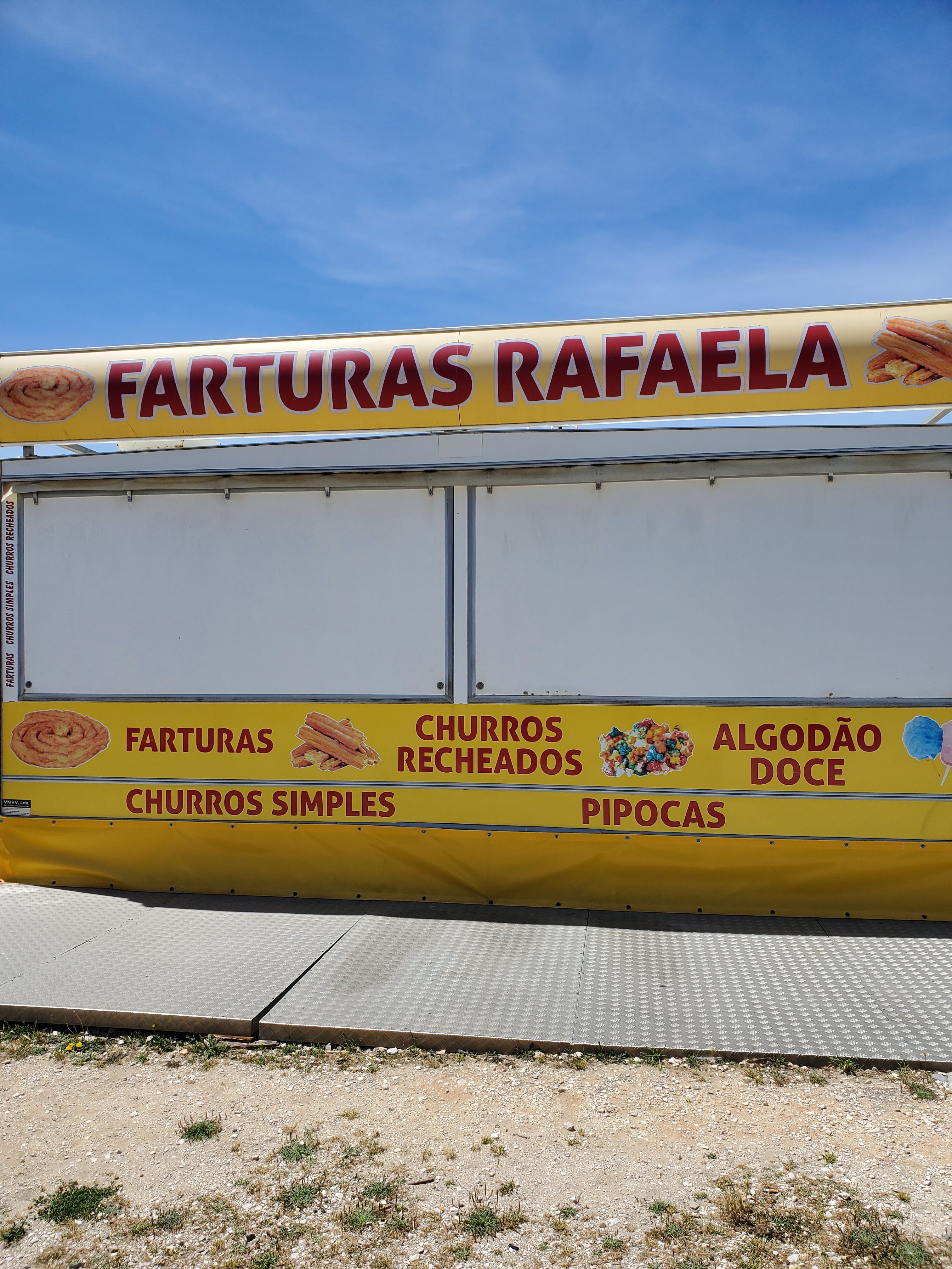 Just one view of the beach, and we are standing at least 100 meters from the roadway and sidewalk on the boardwalk, the beach is huge, even during high tide. It was still pretty early in the year, and while there were lots of campers parked by the beach and a good number of people walking around town, we never saw any crowds on the beach – but given the size there could have been a stadium full of people out there and it wouldn’t be too bad!There were a few places with “fair food” stands along the beach. Apparently, we have the sense of humor of 10 year old’s, because we always got a giggle out of the name of one of the delightful looking fried dough snacks.