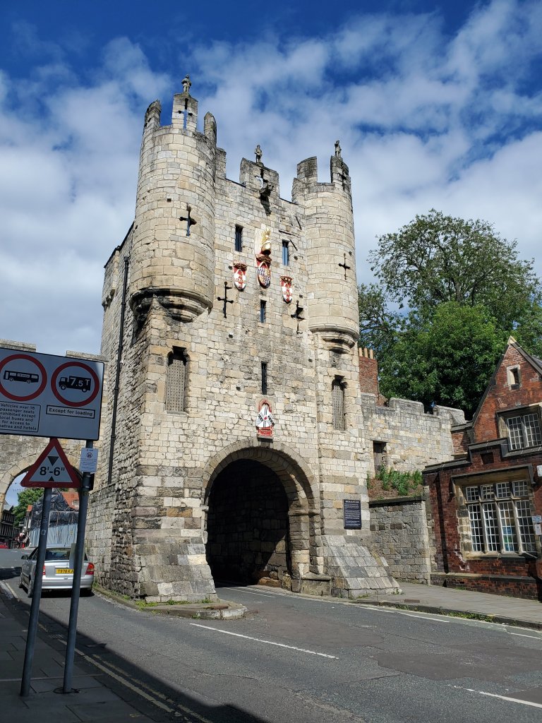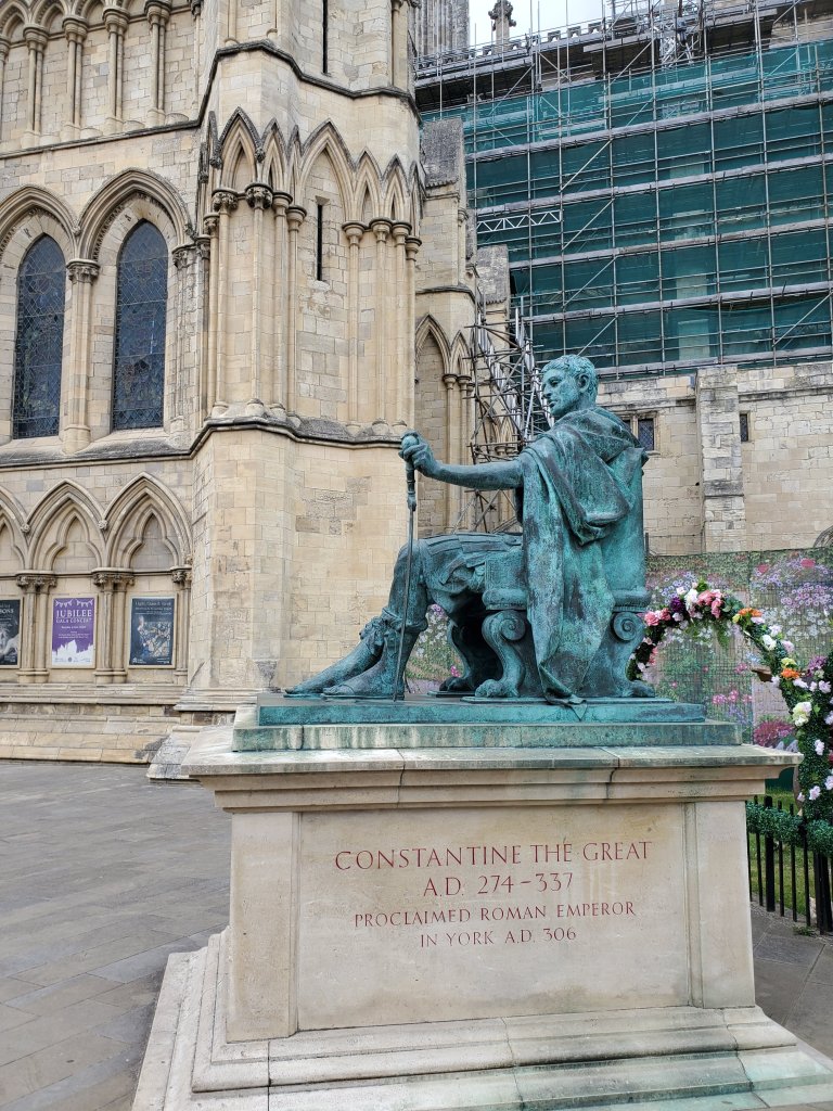 The castle – it took quite a beating during the Civil War in the 1600s, so what’s left is actually pretty remarkable. As we approached the site, we were greeted by an enterprising staff member who explained – with a map! – the benefits of an annual membership to English Heritage. Needless to say, we now have an incentive to visit sites covered by our new membership.Another view of the castle, this one closer to where the cannons of the Roundheads would have been as they aimed their cannons. The building to the left was used for many things over the last few hundreds of years, including during the Second World War, when it housed the garrison commander.A view from the castle grounds back towards the north. The site of the castle has been used by humans dating back several thousand years. The Vikings spend some time here and from here the English engaged in a lot of commerce with Europe before the Romans spent time in the area.Back in York, more evidence of the age of the city and it’s importance, if the number of fortifications and major religious structures can be a gauge. These are the remains of a monastery and hospital. There are several buildings in this complex still in use by the Museum of York, and the surrounding area is a lovely park. History and Architecture buffs will find so many things to learn and see here. Outside of the York Minster is this statue of a Roman Emperor. Seemed a bit out of place until we learned that the previous Emperor – and Constantine’s father – was using York as a base of operations for one of the northern most regions of the Empire. I guess at some point in the 200’s the Romans decided to ignore Ceasar’s report declaring England a “cold and rainy land full of barbarians and not worth the effort” (or something along those lines). I also have a recollection from the tour that the Roman general who came to take over England (at least 50 years after Ceasar wrote it off) used Elephants, thinking that would so frighten and confuse the barbarians as to ease the conquest. But, since I am so far behind in posting, I share that as an interesting tidbit that may or may not be based in any fact. Anyway, Constantine led a Roman Legion and was in York supporting the Empire when his father died. He was named Emperor here in York. I am really hoping we find ourselves in a bar doing trivia one day and we can pull this fact out for the win. This photo also shows the extent of the scaffolding in use for the current phase of restoration – so the scaffolding tour of the Minster is probably worth it.Another of the York Historical Markers, this one outside of a very old church that is no longer in use as such. It is a very subtle way for York to claim to have been the location of the first same sex marriage in England. Anne Lister dressed as a man to conduct business and was known as Gentleman Jack. Since we do not have access to many of the streaming services around, I was not aware of the HBO Show Gentleman Jack until my Pittsburgh friend (yep, that same one – she knows who she is) was less surprised than I would have expected when I posted about this on Facebook.The back side of the Minster. The building to the left that barely makes in the photo at one time housed some naughty priests. Back in the day, due to primogeniture, wealthy families would by younger sons a post in the church where people would pay them to pray for them to reduce their time in purgatory and ease their passage into heaven. For some reason, this led to a number of members of the clergy who were, shall we say, less devout and pious than they might have been. This meant that the nearby streets housed a number of “entertainment establishments.” At one point, there were curbs put in place to improve the optics of this branch of the church, and there were some unhappy people.