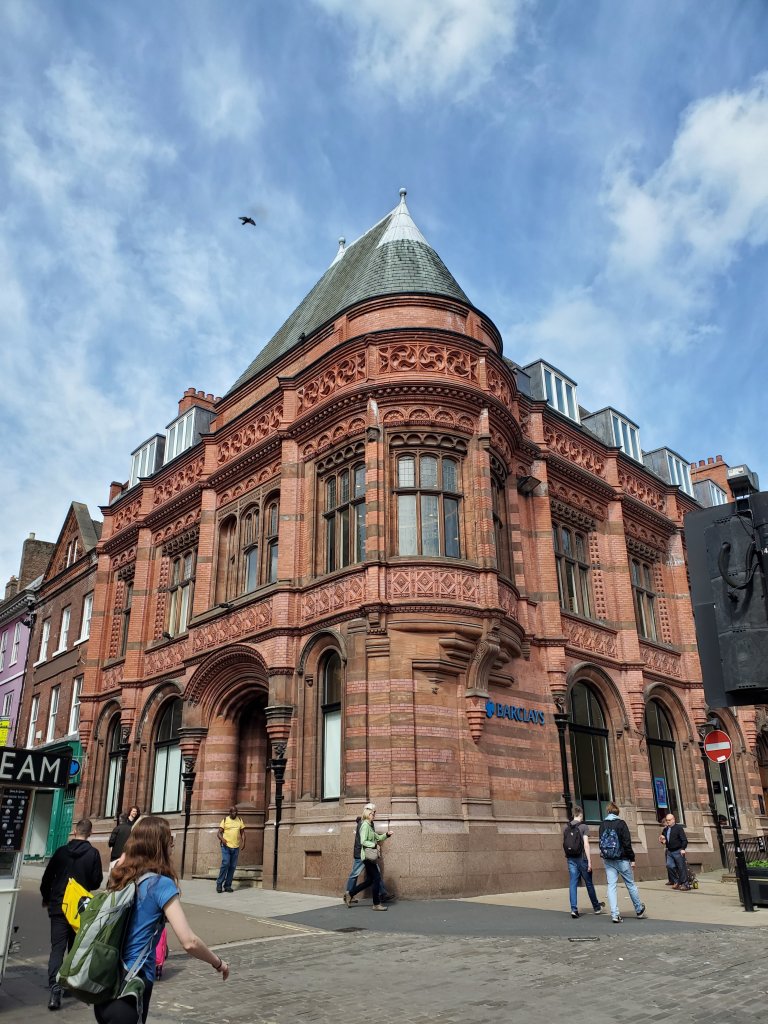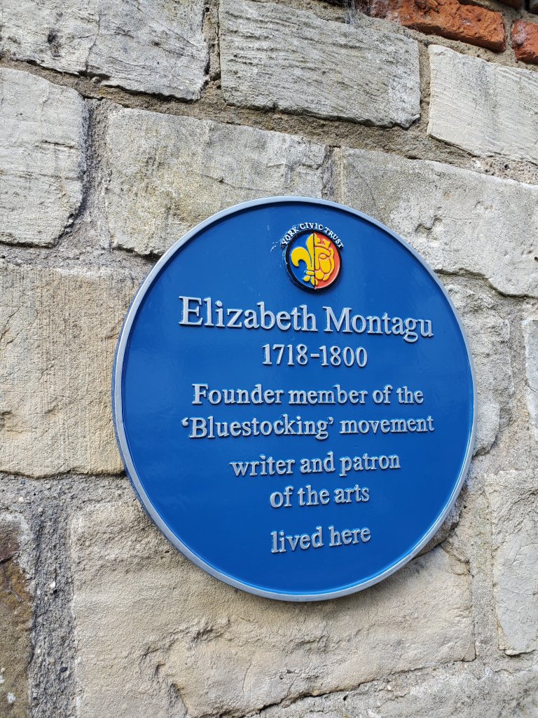 Ian took advantage of the out of towners visiting to be a tourist himself, and got us to take the local, free walking tour. The tour guide was very informative and entertaining, and we had a great day. Afterwards we found a pub, had a good old pub lunch and I indulged my shandy habit! Here we are in front of the York Minster, the cathedral built by a bishop hoping to compete with Westminster Abbey and that Bishop. The Minster, referred to that despite no longer having a seminary, is under constant repair which has created a pretty impressive training ground for stone masons. We did not take the Minster tour this trip, it was pretty crowded, but one option was a scaffolding tour that allowed you to see the restoration work. One of several gates to the city on the medieval wall. The gates all have rooms in the upper floors, one is now a museum, one has been resorted to include the gate so you can see how it works. Another is currently a coffee shop but was a private residence as recently as the 1950s if the signage can be believed. We walked along parts of the city walls every day we were in York and were able to see the entire thing. A view of the Minster from the wall. Alas, my lackadaisical approach to blogging means I have already forgotten what the building in the foreground is. But I think this shot shows off the size and “fanciness” of the Minster pretty well.One of the newer buildings in the city, this one dates back to the Victorian era (I think). The stonework on the various buildings is amazing.Who doesn’t love a good Bluestocking? Also, the York the historical markers were varied and covered many topics.While this is not from the Minster, it is a good representation of what happens to stonework after a few centuries. The Minster has the stonemasons recreating the stonework and replacing it. Not sure if that will be done for other buildings.The River Ouse, one of many with that name in the UK (Hat Tip to my friend in Pittsburgh- you know who you are), as it goes through York. Apparently, it is connected to the canal system and used by the longboaters of England. I am not certain this photo does justice to how tiny some of these boats are, or to the fact the even the big ones have a width that would allow Dan to stand in the middle of the cabin and touch both sides (likely – we never made it on to one).