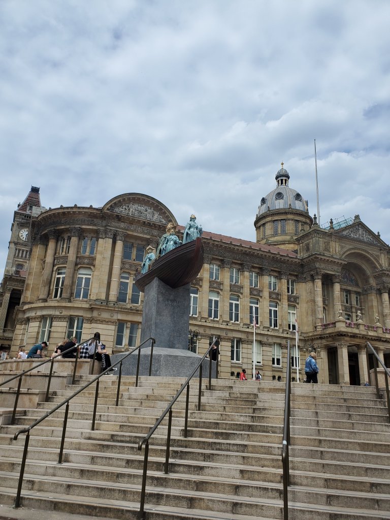 We arrived in England with minimal itinerary and plans beyond checking out London and the Museum, seeing our friend in York and getting to the dock before our ship sailed! There were intermittent rail and tube strikes planned during the few weeks we were there which added to the degree of difficulty associated with our no plan planning strategy. So, we decided the easiest thing was to only take direct trains and travel on the non-strike days. Birmingham got on our radar because it had a site where we could use our shiny new British Heritage Membership, it had a direct train from York, and seemed big enough to keep us entertained for a few days. Beyond that, it was going to be an adventure. We got very protective of this city we knew nothing about when the reaction folks had when we answered the question “where are you headed next?” was often “Birmingham? Really? Interesting choice, what are you going to do there?” But we did get one more enthusiastic response from the lovely woman pulling our pints at the pub – “Oohh, I love Birmingham!” When I asked what we should do there, she replied “I have no idea, I went down for an interview, had a really good meal – can’t remember where – and came back, but it was nice.” Good enough recommendation for us.