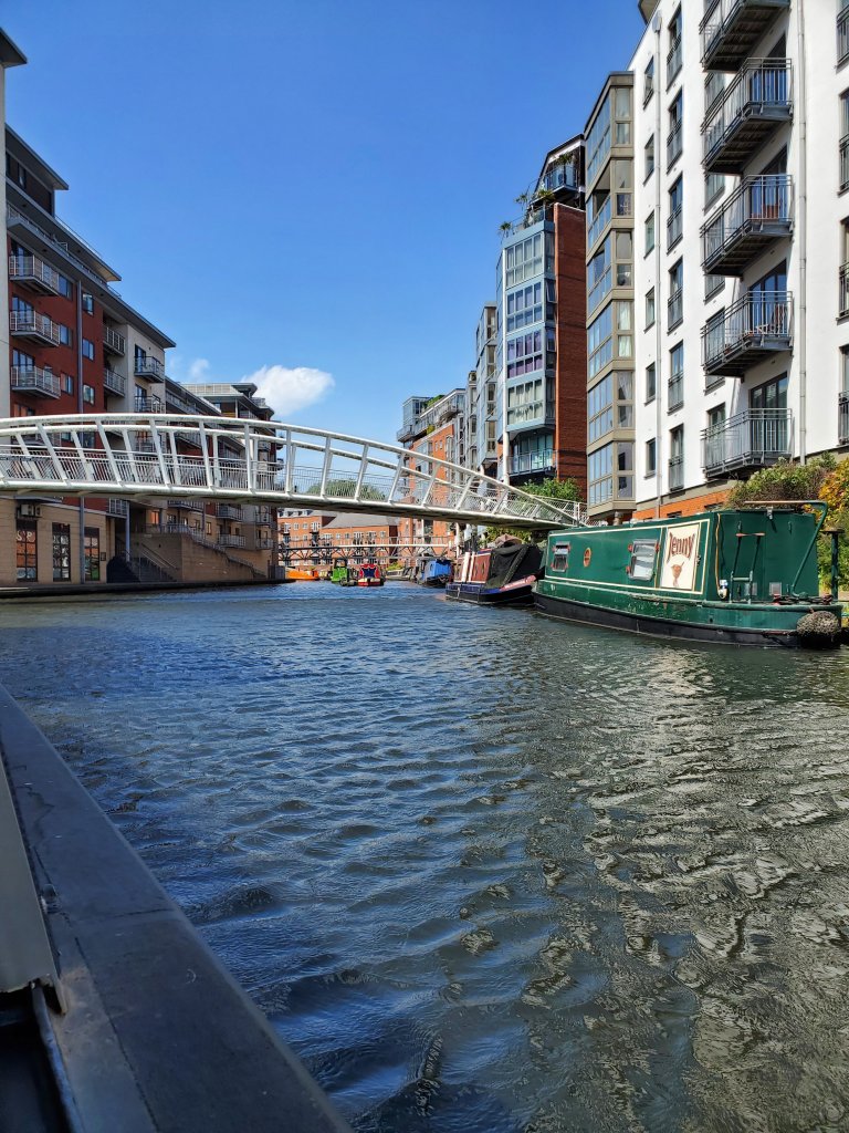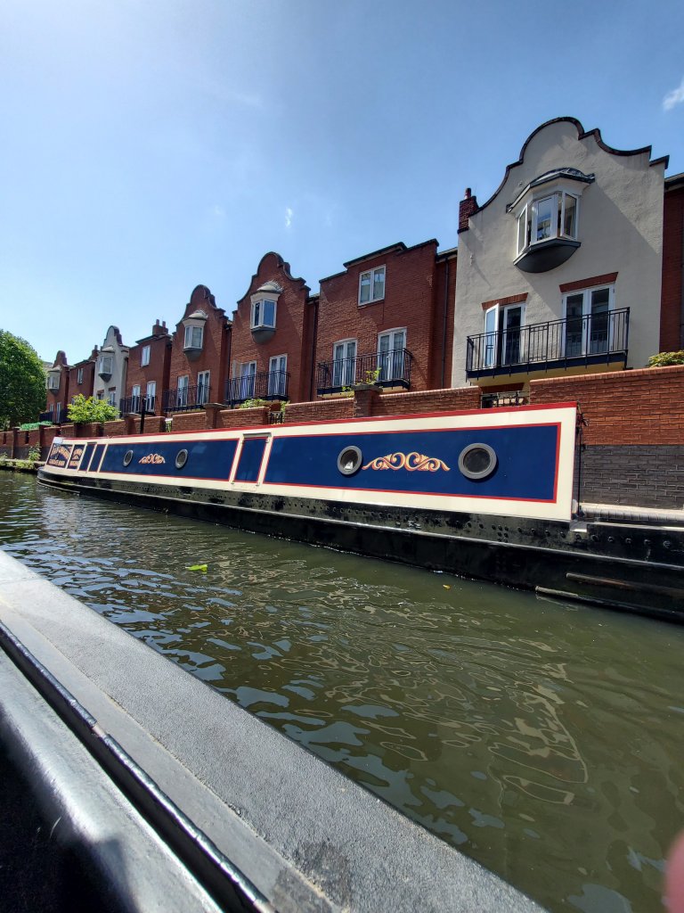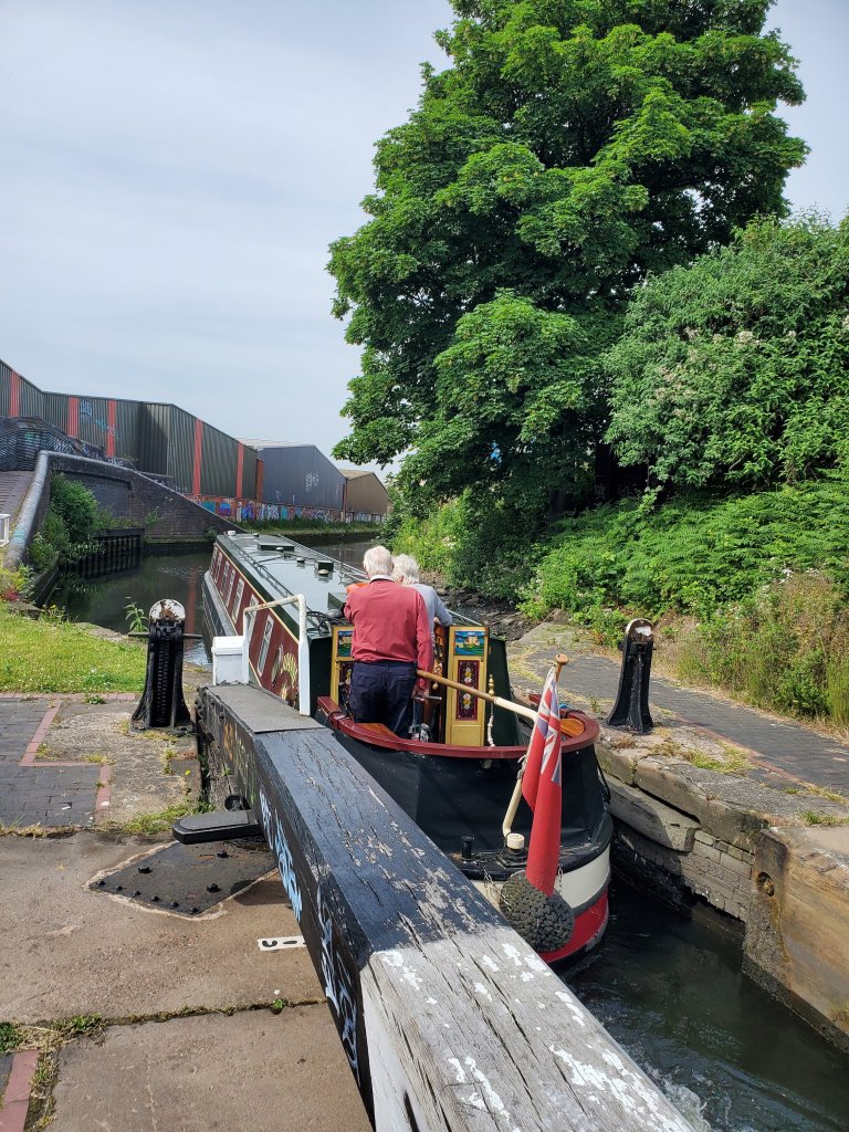Birmingham came into prominence during the Victorian Era and a lot of the architecture shows it.It is also a bustling, modern city and the Main Library shows it!The monument is to Queen Victoria, and the building behind is part of an impressive block of civic and public buildings.Our Missed Opportunity. The couple sailing away from us on that canal boat arrived at the lock as we were approaching. She got off and started doing all of the “water level management tasks” as he steered the boat through the canal. As we all waited for the lock to fill, I went over to see what their story was. They were meeting their son in Birmingham to start a longboat trip. He had recently had a hip replaced, so she was managing the locks. We offered to close the lock behind them and as they started up, they said – hopefully – “we have about 7 more locks in the next few kilometers, we’d give you a tour of the boat and a ride if you’d like to help.” And for some reason, we declined. Idiots! They weren’t to the next lock before we were kicking ourselves and wondering if we should race walk back to catch up. We didn’t, but we have spent a lot of time talking ourselves through similar situations so we’re more prepared to say yes to the next opportunity.
