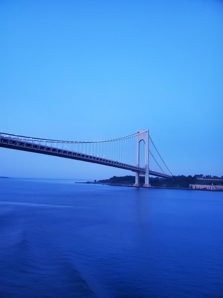 One place that survived was a medieval merchants home which is tricked out with period furnishings and accessories so you get a really good sense of what life was like for a prosperous family of the time.This was likely a very good sized and comfortable bed, with bed hangings to keep you warm, but it was a bit cramped even for those of us with a more diminutive stature (so only one of us).One of the older buildings that survived the relentless bombing of the war. Because Southampton was a major port and the place where the British Spitfire Fighter Planes were manufactured, it was a pretty attractive target.While out wandering around the city with no set goals, as we often do, a nice man standing outside of the Aviation Museum chatted with us and when he found out we were from Ohio, let us know he was interested in getting to the Air Force Museum in Dayton. Then he encouraged us to visit the museum, which we had been discussing once we figured out what the building was. So, we went and grabbed lunch with the air of people who had plans for the afternoon and returned. And it was very worth it. If you ever find yourself in Southampton, don’t let the small size of the building fool you – there is a whole lot of aviation history in there. Added bonus, they have the police and firefighters museums too. We learned a lot that afternoon.Like I said, a lot of stuff in that aviation museum, and they made the most of their space and the unique attributes of some of their artifacts. They also had several planes-or at least cockpits-you could get in to!We also visited the Southampton City Museum. It had a very good exhibit about the Titanic focused primarily on the impact to the city, given that many of the crew were from the area and had families there. The local focus, including showing the perspective of particular crew members ranging from bridge crew to 1st and 3rd class stewards to mechanics in the engine room, gave the sense of a very complete picture of life on board. They also had an area to highlight the inquest and the maritime practices that were changed and standardized in the wake of some of the failures that increased the number of deaths. Of course, this photo has nothing to do with that. It was one of the many late 1800s “games” on display. There were a lot of animatronic games that would have been at theme parks in the Victorian era. Many were elaborate.The Queen Mary 2 as we approached dock. Our hotel was situated just close enough to where the ship was docked that we couldn’t bring ourselves to hire a cab. And it was pretty cool to walk through a port area where large car carriers, freighters and cruise ships all dock.While these may look like cool pieces of sculpture, they are actual spare propellor blades for the ship. They are stored on the fore deck and – unless it is too windy – accessible to folks walking around the ship. They were not accessible several days on our journey as we had a lot of wind, and one full day of very heavy fog so it was a bit like sailing in the clouds.This is about as close as we got to the site of the Titanic. Interesting choice to highlight that site on a ship making a similar journey. Part of the reason we were further north is because taking that “high” route exploits the curvature of the earth to make the journey shorter. The QM2 is an Ocean Liner, not a Cruise Ship, and as such, is designed for these long sea voyages. The ship moved along at a pretty fast clip of about 24 knots, as compared to the cruise ship we took over which kept the pace at no more than 18 knots. Not only were we going faster, the ride was incredibly smooth, even on the days when we had higher swells.Entering New York City, one of several impressive bridges.The sunrise as we approached Manhattan Island. It was a very dramatic way to come into port.The Statue of Liberty.Another bridge, hey – they don’t have labels!