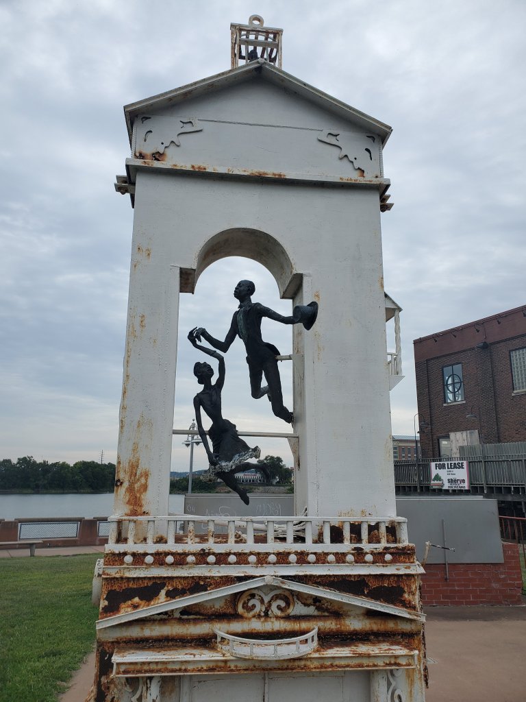 A cool piece of art along the Riverfront Park in Peoria.Dan Fogelberg, crooner of songs from my tween and teen years, was born in Peoria. This lovely view is a fitting Memorial.Peoria is one of many communities that has a “solar system walk” where you can get a sense of how big our solar system is, and learn about the planets. The final lines of the description of Earth made us giggle. “Speculation abounds concerning the possibility of intelligent life on Earth. The Planet hasn’t always been hospitable for humans, and isn’t guaranteed to remain so.”