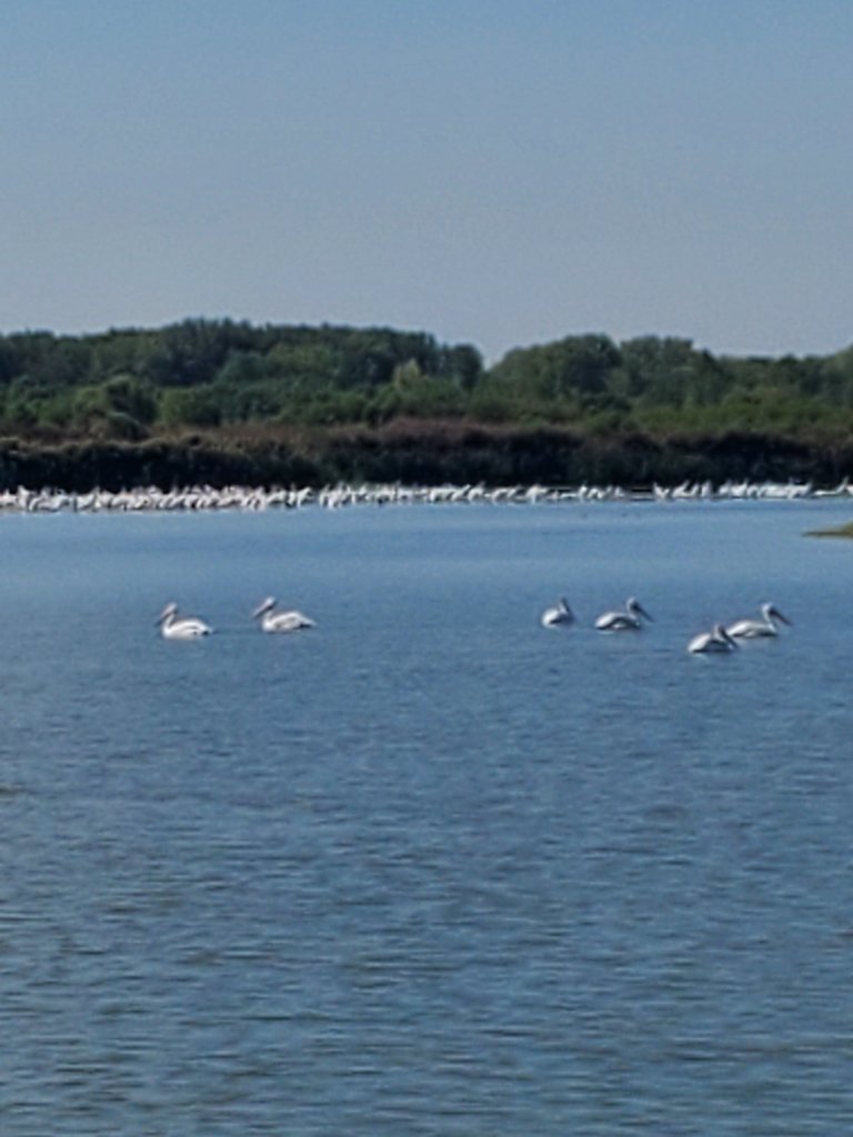 The road itself is mostly a two lane highway with access roads to the wetlands and river area. We turned down one access road and came across a whole herd of river pelicans. There were also a lot of swans, but they were on the other side of the car.