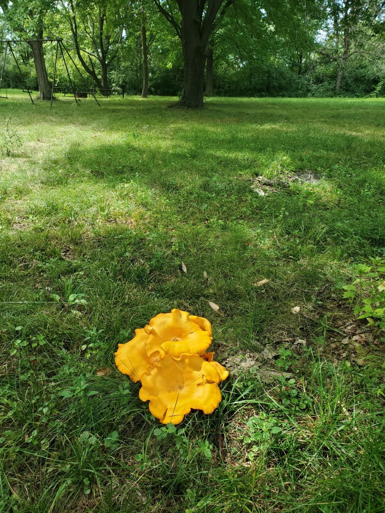 One bit of weirdness though – the area showing how the Native Americans would have lived seemed a bit “off” at first. Well, by the time I got to the second display showing the activities usually done by women I realized that they had added really bad shirts to cover the breasts. They also added coverings for some of the two dimensional displays. It was very off putting and so distracting that anything I learned in the museum is lost behind this fact. Later in the day we came across some signage by the conservation area that included some photos from the museum that included the display – minus the weird togashirts – that were dated about 2011, so the shirts are a recent addition. A quick internet search netted zero results, so apparently the dressing was done stealthily enough to avoid any commentary that would show up for those of us curious as to who thought this was a good idea. Apparently, the excess of culturally inappropriate modesty only extended to the displays of women’s activities.Lovely flowers.A fungus, it was about the size of a football.If you look closely, you can see two cranes in this photo. The estuaries and wetlands along the river were drained in the last century or so and used for farmland. The river went from being one of the most lucrative fisheries in the United States to being overfished and impacted by farm runoff. In the last twenty years or so conservation groups have obtained the land and restored it to a more natural state. Part of the recovery is seeing the return of many native species, plants and migratory birds. We also saw kayakers, campers and lots of people fishing.
