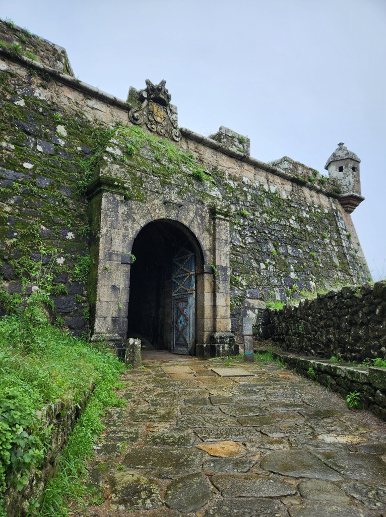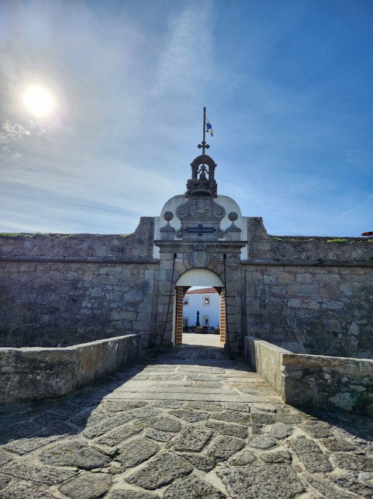 The main fort in Viana do Castelo is near the mouth of the river and is good sized. It also still has a moat filled with water! The buildings inside the wall are currently in use, it looks like a school for tourism if our translation of some of the signs is correct.They may no longer put guards in the lookouts, but they are still useful for checking out the surroundings.