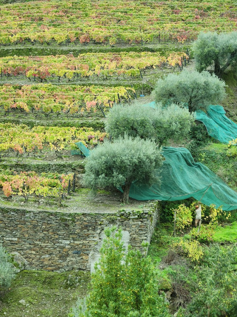 A view of Quinta da Foz, more terraced vineyard and a bright tree.