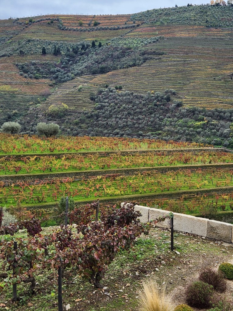 The vineyards, especially those which grow grapes primarily for Port wine have the varieties intermingled. The winery tour guide may have explained why, but he was also telling jokes and neither of us can remember the reason. Several of the wines we tasted are blends with 20 or more grape varieties in them.