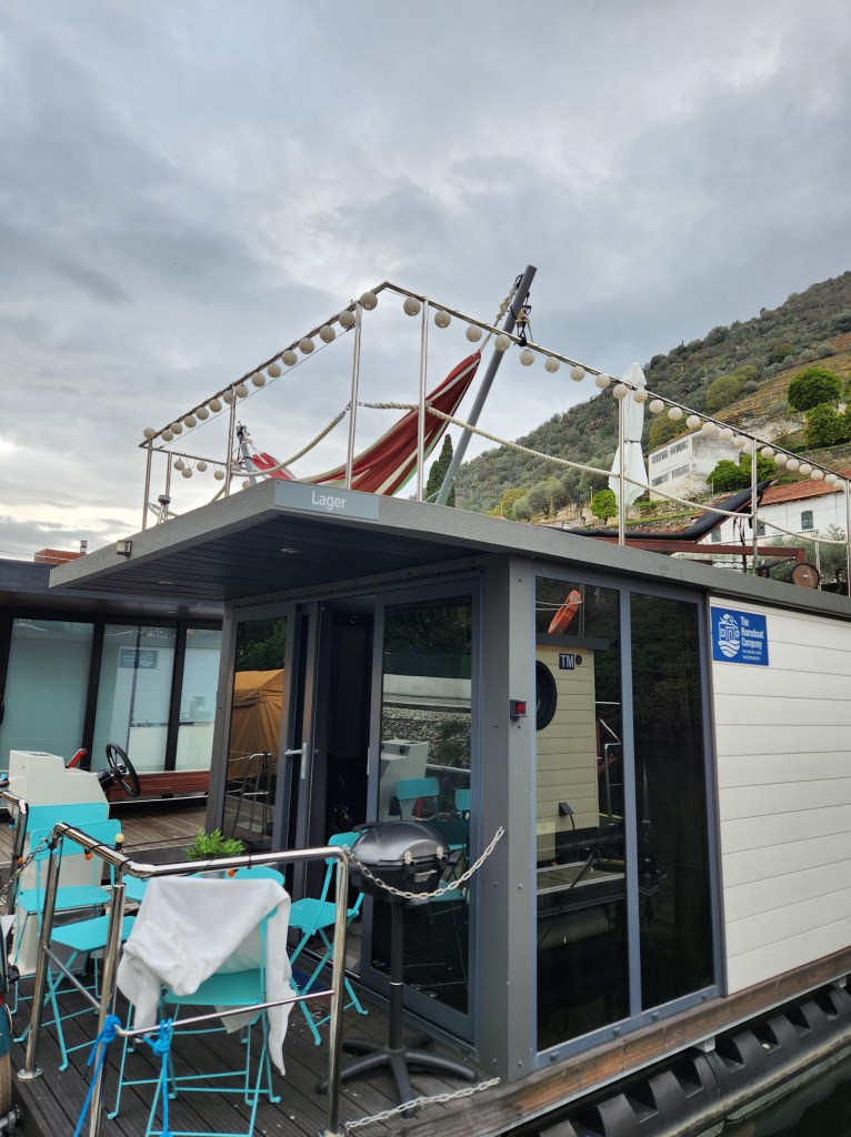 When we were planning our trip to Pinhão one of the lodging choices was a houseboat. I was intrigued but would not have booked it left to my own devices. After I mentioned the choice to Dan he was all in! “Of course we should stay on the houseboat! Think of the experience.” So, we spent the week on a really nice, tiny, but nice houseboat. After we adjusted to the realities of a marine toilet and figured out how to get in and out of the bunk beds we settled in and enjoyed the gentle sway of our space.